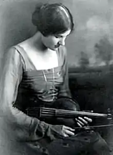 At Stanford's urging she shifted her focus from the violin to the viola, just as the latter was coming to be seen as a legitimate solo instrument.[2] She studied with Lionel Tertis, who was considered by some the greatest violist of the day.[2] In 1910 she composed a setting of Chinese poetry, called "Tears", in collaboration with a group of fellow students at RCM.[3] She also sang under the direction of Ralph Vaughan Williams in a student ensemble organised by Clarke and another student called Beryl Reeve (later Clarke's sister-in-law) to study and perform Palestrina's music.[3]