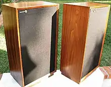 Some of these early 3-way models featured 10" and 12" woofers manufactured by Jensen ("Flex-Air") and CTS (Chicago Telephone Supply), 5" whizzer cone squawkers manufactured by Philips Electronics of the Netherlands, and 2" and 2.5" cone tweeters by Peerless of Denmark.[32] The Rectilinear speakers were typically, but not always, of ported design and finished in walnut with fabric or fretwork grilles. Many models featured one, or sometimes two, rear tone controls. The company offered some of their models as kits and "semi-kits".[33]