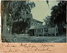 Red Bank Plantation dates to the 18th century. The name was in use by 1793, during Florida's second Spanish period, when Francisco Flora owned the property. In 1799 William Craig acquired the land, and it subsequently passed through the hands of several powerful landholders: Isaiah Hart, Isaac Hendricks, and finally Albert Gallatin Philips. Philips developed the 450-acre slave plantation on the site.[2] Philips married Isaac Hendricks' daughter Margaret; this, combined with Hendricks' marriage to Elizabeth Hudnall, another large landowner, meant that by 1850 most land in the area was connected by marriage.[3] Philips built Red Bank Plantation House beginning in 1854.[2]