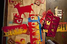 The red goats are stencils which were painted onto a number of white planters and other locations around Kingston's Stockade District from October 24–26, 2011. Varying reports claim that 32,[1] 33,[2] or 38[3] football-sized red goat stencils appeared throughout the uptown area.[4] The goats were placed on eleven planters which had been installed as part of a renovation project known as the Pike Plan, just prior to the project's dedication.[5] Numbers were painted over the goat stencilled designs the following night.[1][6]