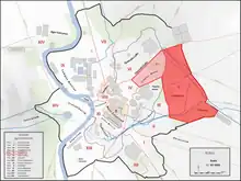 Regio V was dominated by the limits of the Esquiline Hill and its northern and southern extensions, the Oppian and Cispian Hills respectively. Its western and southern limits were eventually enclosed by the Aurelian Walls, while to the north its limit was the Vicus Patricius and the Clivus Suburanus to the east. One of the larger regions due to the inclusion of the Campus Esquilinus, a measurement taken at the end of the 4th century recorded that the perimeter of the region was 15,600 Roman feet (approximately 4.61km).[1]