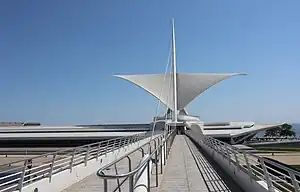 The Reiman Pedestrian Bridge is a cable-stayed footbridge in downtown Milwaukee, Wisconsin that spans Lincoln Memorial Drive. It connects the Milwaukee Art Museum on the lakeshore to the east side of the downtown's central business district by way of O'Donnell Park, a multi-use park complex. The bridge was built in 2001 as part of a major expansion to the museum that included the Quadracci Pavilion. Both the bridge and Quadracci Pavilion were designed by Santiago Calatrava, the first such structures built in the United States.