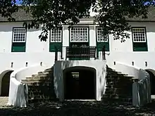 Located on Murray Street, it is a six-gabled, h-shaped Cape Dutch structure built with locally sourced materials. It may have been designed by Louis M. Thibault who designed the Drostdy in Graaff-Reinet[3]