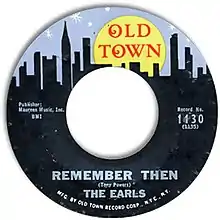 "Remember Then" is a pop song written by Tony Powers and Beverly Ross, and first recorded in 1962 by doo-wop vocal group The Earls. Original copies of The Earls' version, on the Old Town label, show only Powers as the writer, while some later versions give a writing or co-writing credit to record producer Stan Vincent. BMI lists all three as co-writers.[1]