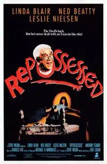 Repossessed is a 1990 American comedy horror film that parodies the 1973 horror film, The Exorcist. It was written and directed by Bob Logan. The film features the original star of The Exorcist, Linda Blair, as well as Leslie Nielsen and Anthony Starke. Many gags parodied events in The Exorcist, such as the green-vomit and head-spinning scenes, and real-life events such as the televangelist scandals of the 1980s.