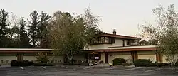 The Rest Haven Motel, also known as the Usonian Inn, is a historic motel at E5116 U.S. Highway 14 in Spring Green, Wisconsin. Mr. and Mrs. John Michels opened the motel in 1952 to serve travelers on the new route of U.S. 14, which was realigned to bypass downtown Spring Green in 1944. Architect Jesse C. Caraway, a member of Frank Lloyd Wright's Taliesin Fellowship, designed the motel according to Wright's Usonian principles. The hotel has a two-story central core, which contains its office and owner's residence, and two one-story wings of rooms with low cantilevered canopy roofs, reflecting the typical pattern of Usonian homes. Each room has small, high windows on the side of the building facing the road and larger windows in the rear; this arrangement, which was common to both Wright's work and motel designs of the era, provided lodgers with privacy while giving them a protected view of the motel's natural surroundings. While the hotel has passed through multiple owners, it is still in operation and is a rare intact example of an owner-occupied mid-century motel.[2]