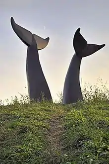 Reverence is a sculpture in Vermont created by Jim Sardonis in 1989 that depicts two tails of whales "diving" into a sea of grass. It is meant to symbolize the fragility of the planet. The tails were made from 36 tons of African black granite and stand 12 to 13 feet (3.7 to 4.0 m) tall.
