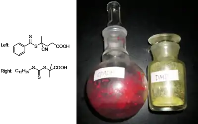 - ↑ Moad, Graeme; Y.K. Chong; Almar Postma; Ezio Rizzardo; San H. Thang (2004). "Advances in RAFT polymerization: the synthesis of polymers with defined end-groups". Polymers. 46 (19): 8458–8468. doi:10.1016/j.polymer.2004.12.061.