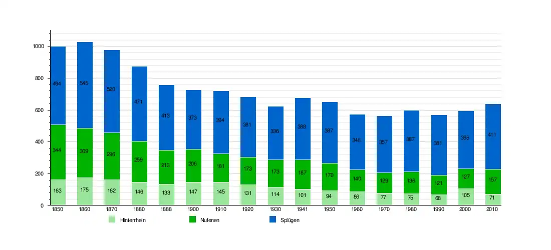 - ↑ Swiss Federal Statistical Office STAT-TAB Bevölkerungsentwicklung nach institutionellen Gliederungen, 1850-2000 (in German) accessed 27 April 2016