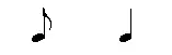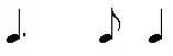 - Quarter (crotchet), eighth (quaver) (generally barred, therefore, in 3