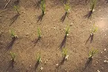 In upland and deep-water rice plantations, direct seeding is the preferred method. This involves broadcasting or dibbling non-germinated seeds to dry soils in order to establish crops, which are transplanted during monsoon season.[10]