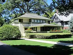 The River Forest Historic District is a national historic district encompassing much of the village of River Forest, Illinois. The district includes 830 buildings, most of which are houses as the village is almost entirely residential. The oldest structure in the district is the 1831 Bickerdike and Noble sawmill, the first permanent structure built by European settlers in River Forest; residential development began in the mid-nineteenth century and continued through the 1930s. The district has a considerable number of Prairie School houses, including a rare example of an entire block of small-scale Prairie homes. Several works by Frank Lloyd Wright are within the district, including the Winslow House and stable, the Chauncey L. Williams Residence, the Isabel Roberts House, the J. Kibben Ingalls House, and the River Forest Tennis Club. The Prairie School architects William Eugene Drummond, Tallmadge and Watson, Purcell & Elmslie, John S. Van Bergen, and Spencer & Powers designed homes in the district as well. Examples of other popular architectural styles, most prominently Italianate and Classical Revival, can also be found in the district.[2]