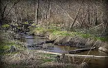 Ingersol Creek at Novi. Note riparian buffer. Just outside the frame are a rail line and residential, industrial, and public recreation facilities