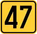 Roads categorized as state roads, class IB are 4,486 km in total length as of June 2022 and are marked with two-digit numbers.[1] They have one lane in each direction, signs are black-on-yellow and the normal speed limit is 80 km/h.