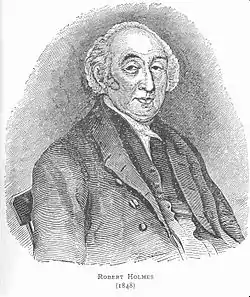 1. 1 2 3 4  One or more of the preceding sentences incorporates text from a publication now in the public domain: "Holmes, Robert (1765-1859)". Dictionary of National Biography. London: Smith, Elder & Co. 1885–1900.