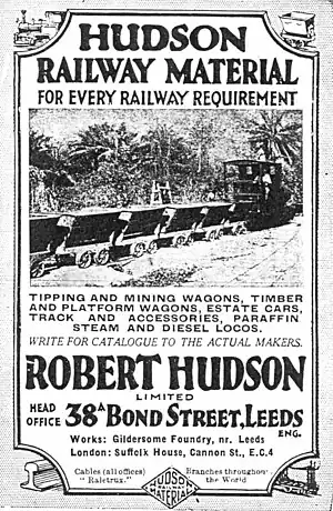 Robert Hudson Ltd was a major international supplier of light railway materials, based in Gildersome, near Leeds, England. The name was later changed to Robert Hudson (Raletrux) Ltd.