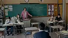 Blitz believed that Hal's stuttering was a metaphor for his lack of mastery of life and love: "He can't control this thing that ought to be so simple ... And so much of his life is like that."[17] Journalist Mark Baumer highlighted the juxtaposition of Hal with the fast-talking debaters, who are at opposite ends of the spectrum with their speech but are both struggling with communication and expression.[20] Blitz said that "Even when [the children] can speak incredibly fast and are packing their sentences with tons of SAT words, they still don't know exactly what they're talking about. There is still a question about whether their content of what they're talking about matches up with what they're feeling or trying to express. Whether it's the kid who's talking a million miles an hour, but saying nothing or the kid who isn't able to get out any word at all they're both at the mercy of not knowing how to express what's inside them."[20]