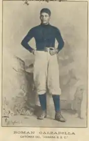 Román Calzadilla was a Cuban baseball catcher in the Cuban League. He played for 11 seasons from 1889 to 1902 for Matanzas, Progreso, Aguila de Oro, Habana and Fiesta. He was elected to the Cuban Baseball Hall of Fame in 1945.[1]