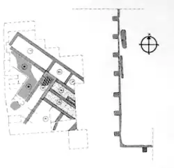 The different orientation of this area underlines its functional distinction from the rest of the site, as this southernmost area was the public part, built around a V-shaped portico that overlooked the via Chiana.