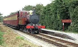Ronaldsway Halt (Manx: Stadd Roonysvaie) is a request stop on the Isle of Man Railway between Castletown and Ballasalla at Ronaldsway, near the Isle of Man Airport. Passengers wishing to board the train here can signal the driver to stop the train; to alight from the train the guard must be notified in advance.