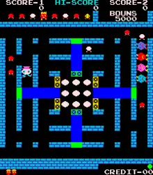 Fitter,[4] known as Round-Up in the Americas,[1] is a maze-strategy arcade video game released by Taito in 1981.[2] The game was released as Fitter, in Japan in October 1981[1] and in Europe the same year.[3] Another Japanese company, Hiraoka, licensed a version called Round-Up to Centuri for release in the Americas in December 1981.[2]