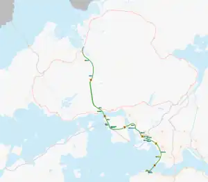 ![]() Alignment and exits of Route 3 (zoom in to view exit details) | ||||