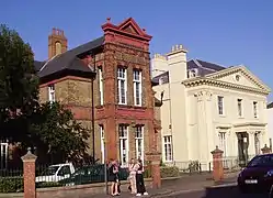 ![]() The (red-brick) Annex on the left and the original (cream-coloured) Dispensary on the right | |