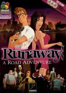 Runaway: A Road Adventure is a 2001 graphic adventure game developed by the Spanish company Pendulo Studios and published by Dinamic Multimedia. It follows the story of Brian Basco, an American college student on the run after he unwittingly saves a murder witness named Gina Timmins from assassination by the New York Mafia. Searching for clues about a mysterious crucifix linked to the murder, Brian and Gina embark on a cross-country journey through the United States while pursued by two Mafia hitmen. The player assumes the role of Brian and explores the game world while collecting items, solving puzzles and conversing with non-player characters.