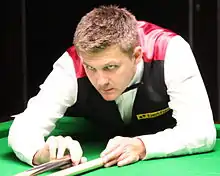 Day advanced to the quarter-final stage of the Shanghai Masters by overcoming Neil Robertson and Mei Xiwen, both 5–2, before losing 3–5 to Mark Selby.[35] He won the first four frames against Mark Allen in the third round of the UK Championship, but went on to lose 6–5.[36] His second quarter-final of the season came at the German Masters and he was defeated 2–5 by Martin Gould.[37] At the World Grand Prix, Day overcame Stuart Bingham, Michael White and Shaun Murphy all 4–2. In the semi-finals he was 3–4 down to Marco Fu, but recovered from needing four snookers in the eighth frame to level and went on to win 6–4.[38] In Day's first ranking event final since 2008 he was 9–3 behind Barry Hawkins and, though he pulled it back to 9–7, he was defeated 7–10.[39] Day lost in the final of the non-ranking Championship League 0–3 to John Higgins.[40] A 4–2 win over Neil Robertson saw Day play in the semi-finals of the Gibraltar Open and he was beaten 4–2 by Judd Trump after leading 2–0.[41] Day was a seeded player for the World Championship, but lost 4–10 Xiao Guodong in the first round and once again blamed his lack of concentration for the early exit.[42]