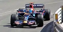 Bourdais tested significantly for the Toro Rosso team during the winter, though he was uncertain of a drive heading into the new year. On 6 February 2009 however he was confirmed as a Toro Rosso driver for a second year, partnering Swiss rookie Sébastien Buemi.[7] Despite two points finishes in the year at the Australian Grand Prix and in Monaco, Bourdais struggled to match his less experienced team-mate. In Spain Bourdais struck Buemi's car as the field attempted to avoid a spun Jarno Trulli on the first lap, ending the race for both drivers. At the British Grand Prix Bourdais collided with McLaren driver Heikki Kovalainen, again ending the race for both. At the German Grand Prix he suffered a mechanical failure after qualifying last by over a second.