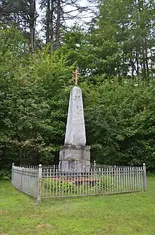 A monument at Father Rale's grave memorializing his work.
