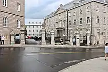 The Seminary at 1 Rempart Street, Québec, was designated a National Historic Site of Canada in 1929.[4] This location continues to operate as a centre for educating Roman Catholic priests[5] A section of the Vieux Séminaire has been the location for the Université's school of architecture since 1987.[6][7] The Camille-Roy pavilion houses the restored Promotions Room which can be rented as a venue for various types of events.[8]