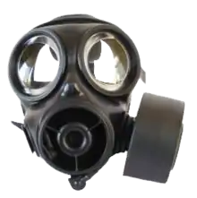 The S10 was introduced in 1986 as a replacement for the S6 NBC Respirator[1] in service from the 1960s, and is manufactured by Avon Rubber.[2] S10s were issued to British nationals in Saudi Arabia during the 1991 Gulf War and were marked by a blue coloured PSM (Primary Speech Module) fitting or a blue painted spot on the forehead.