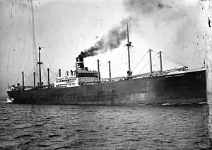 Edward Luckenbach was delivered to the War Shipping Administration (WSA) for World War II operations on 3 March 1942 to be operated by Luckenbach as WSA's agent.[18] On 1 July 1942 the ship mistakenly entered a defensive minefield five miles off Smith Shoal Light, about 11 miles (18 km) north-northwest of Key West, Florida, struck two mines and sank. One crew member was killed. The ship sank with the superstructure above water and the 41 surviving crew and 12 man Navy Armed Guard re-board the next day. They weare transported to Key West by patrol craft.[19] One of the first major salvage operations for Harjurand (ARS-31) was recovery of cargo from the wreck. The operation, involving other salvage ships, lasted from 28 March to 8 December 1943. Harjurand transported some 4,500 tons of the recovered ore to Tampa, Florida to be used in the war effort.[20][note 3] The ship itself was declared a Constructive Total Loss (CTL).[18]