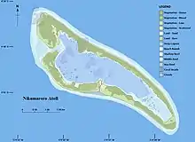 However, crossing the reef on that part of the coast was hazardous even with a surfboat. The islanders were concerned that if the boat capsized, all of its occupants would be at risk from sharks.[18] They took the surfboat to the lee side of the island,[4] about 1+1⁄2 miles (2.4 km) south of the wreck,[16] but the sea there was not much calmer. They made one trip, taking three survivors out beyond the reef, where they were transferred to one of Trongate's lifeboats.[4] The three men were the Second Engineer, wireless operator, and cabin boy.[14][15] On the islanders' recommendation, the rescue operation was suspended until the next day.[4] The islanders caught land crabs and seabirds for food, and lit a fire after the survivors had run out of matches.[16]