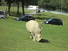 The first drive-through safari park outside of Africa opened in 1966 at Longleat in Wiltshire, England.[2][3] Longleat, Windsor, Woburn and arguably the whole concept of safari parks were the brainchild of Jimmy Chipperfield (1912–1990), former co-director of Chipperfield's Circus, although a similar concept is explored as a plot device in Angus Wilson's "The Old Men at the Zoo" which was published five years before Chipperfield set up Longleat.[4] Longleat's Marquess of Bath agreed to Chipperfield's proposition to fence off 40 hectares (100 acres) of his vast Wiltshire estate to house 50 lions. Knowsley, the Earl of Derby's estate outside Liverpool, and the Duke of Bedford's Woburn estate in Bedfordshire both established their own safari parks with Chipperfield's partnership. Another circus family, the Smart Brothers, joined the safari park business by opening a park at Windsor for visitors from London. The former Windsor Safari Park was in Berkshire, England, but closed in 1992 and has since been made into a Legoland theme park. There is also Chipperfield's "Scotland Safari Park" established on Baronet Sir John Muir's estate at Blair Drummond near Stirling, and the American-run "West Midland Safari and Leisure Park" near Birmingham. One park, along with Jimmy Chipperfield at Lambton Castle in North East England, has closed.