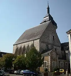 Construction of a new transept began in the 14th century, but was delayed by the Hundred Years' War.[5][6] The adjoining priory was demolished in 1474, before being rebuilt.[7] The project was not completed until the dawn of the 16th century,[8] under the impetus of generous donors including Geoffroy II de Chemens and his wife Marthe de Baïf, sister of Jean-Antoine de Baïf, poet of the Pléiade.[6] The keystones of the transept arms were built between 1506 and 1538.[8]