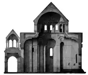 The monumental exterior of the church is "considered one of the great achievements of medieval Armenian architecture."[19] It has been described as "one of the most complex compositions in Armenian architecture."[21] Along with Saint Gayane Church, it stands as a "model of the austere beauty of early Armenian ecclesiastical architecture."[13]