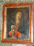 The Nuestra Señora de los Dolores de Turumba (Our Lady of Sorrows of Turumba) is a 9 by 11 inches (23 by 28 cm) oil on canvas painting of the Virgin Mary.[11] It is a replica of Nuestra Señora de las Antiguas, which was found by fishermen on September 15, 1788 after a storm. It was found floating in Laguna de Bay on the bank of the Matamig River and its presence began the devotion of Our Lady by the church.[11] The Turumba Festival in honor of the Our Lady of Sorrows is the "largest and longest religious celebration in the country".[5] It consists of seven Turumba novenas, or lupi, for seven months commemorating the seven sorrows of the Virgin Mary.[10]