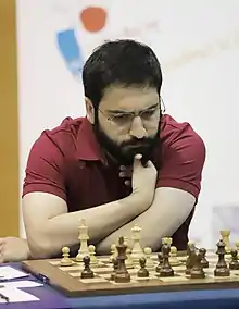 Born in Sharjah,[3] Saleh won three titles at the Asian Youth Chess Championships: under 14 in 2007,[4] under 16 in 2008,[5] and under 18 in 2009.[6] He won the Emirati Chess Championship in 2008,[7] 2011[8] and 2012,[9] and the Arab Chess Championship in 2008, 2014 and 2018. Salem Saleh won the Arab Individual Blitz Chess Championship 2017 and 2018. In August 2015, in Al Ain, he won both the Asian Chess Championship and the Asian blitz chess championship.[10] In 2017, he finished in a tie for first place in the 1st Sharjah Masters international championship with Wang Hao, Adhiban Baskaran, Martyn Kravtsiv, Yuriy Kryvoruchko and S. P. Sethuraman.[11][12]