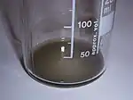 Salmiakki Koskenkorva is a somewhat viscous black liquid, or a dark grayish brown when of a thinner consistency. Upon closer inspection, very fine particles of carbon black are visibly suspended in the liquid.