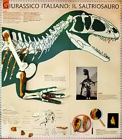 In 2000, the museum opened a special exhibition of the bones. On this occasion, Dal Sasso provisionally gave the dinosaur, now thought to be a species new to science, the Italian name Saltriosauro. Although this has been occasionally Latinised to "Saltriosaurus", even in the scientific literature, in both the Italian and Latin form it remained an invalid nomen nudum.[1]