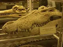 Fossil remains of a saltwater crocodile excavated in northern Queensland were dated to the Pliocene.[21][22] The saltwater crocodile's closest extant (living) relatives are the Siamese crocodile and the mugger crocodile.[23][24][25][26]