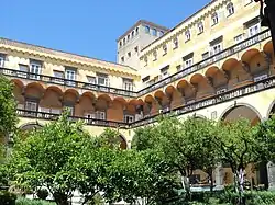 The main attraction is the cloister (1580). In the centre is a marble fountain, decorated with dolphins and other marine creatures, with the statues of "Christ and the Samaritan Woman", by Matteo Bottiglieri.