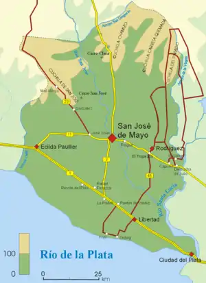 San José Department (Spanish pronunciation: [saŋ xoˈse]) is a department of Uruguay. Its capital is San José de Mayo. It borders Colonia Department to the west, Flores Department to the north and the departments of Florida, Canelones and Montevideo to the east. Its southern limits are described by its coastline on Rio de la Plata.