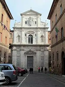 The church was commissioned in 1596 in the will of the Sienese noble Aurelio Chigi. The church was adjacent to a conservatory for children of impoverished nobility (nobili decaduto) and thus known as di Refugio.[1] In 1798, an earthquake caused some damage.[2] During the 19th-century it served as a school for young women, called the Royal Conservatorio Riuniti, because it was joined to the adjacent Conservatory of Mary Magdalen.