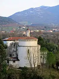 A chapel at the hilltop at this site was founded circa 1130, and by the 14th century, a new church was erected dedicated to the Saints Cosmas and Damian (Italian: Santi Cosma e Damiano). The main altar was built in 1639 and houses a 16th-century canvas depicting the Madonna and Child with Saints and Cardinal Numaio.[1] While bishop of the town, the Cardinal Numaio placed the church and its property under the property of the diocese.[2]