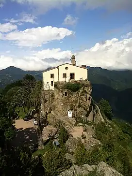 The Santuari de Bellmunt (sanctuary of Bellmunt in Catalan) is a sanctuary in the municipality of Sant Pere de Torelló (Osona), which is located on top of the Serra of Bellmunt at 1246 m altitude. There is a viewpoint from where visitors can see the plain of Vic, the Pyrénées, the Ges Valley, and Bisaura. Along the sanctuary is a refuge and a restaurant, all built on the rock. It can be accessed on foot or by car from Sant Pere de Torelló, and from Vidrà only on foot. The image of the Lady of Bellmunt is a 22 cm painted statue of Alabaster.[1]