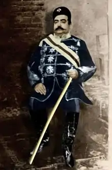 Sardar Rafie Yanehsari (1856-1930) was the Wali of velayat of Astarabad and Governor of Gorgan from the time of Naser el-Din Shah to Reza Shah and was a member of Yanehsari Dynasty. Sardar Rafi played a major role in the development of the areas under his rule, the first explorations in Gorgan, the first carvings in Tepe Hisar, the construction of the road between Gorgan and Tehran and the introduction of modern science to Gorgan, Only part of his activity was during his 39 years of rule.[1] Sardar Rafi first came to power in February 1892, when he was succeeded by his father, Lotf Ali Khan Sartip, who ruled the Hezarjarib region and rose to the rank of brigadier general.[2] In addition to his services to modernize the areas under his rule, he and his nephew, Amir Khan-e Sardar, played an important role in suppressing Turkmen insurgency.[3]