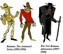 - The DCAU incarnation of the Scarecrow appears in The Batman Adventures.[53][54] Series writer Ty Templeton stated during an interview that he originally wanted to use the Scarecrow in a story which would have revealed why an accident and a murder trial provoked him to change his costume, as his face was never seen in The New Batman Adventures, but the series was canceled before the reason could be revealed.[55]